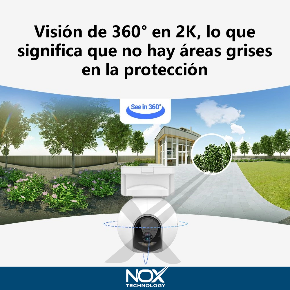 - Rotación 360°, cobertura total con movimiento horizontal de 340° y vertical de 65°.