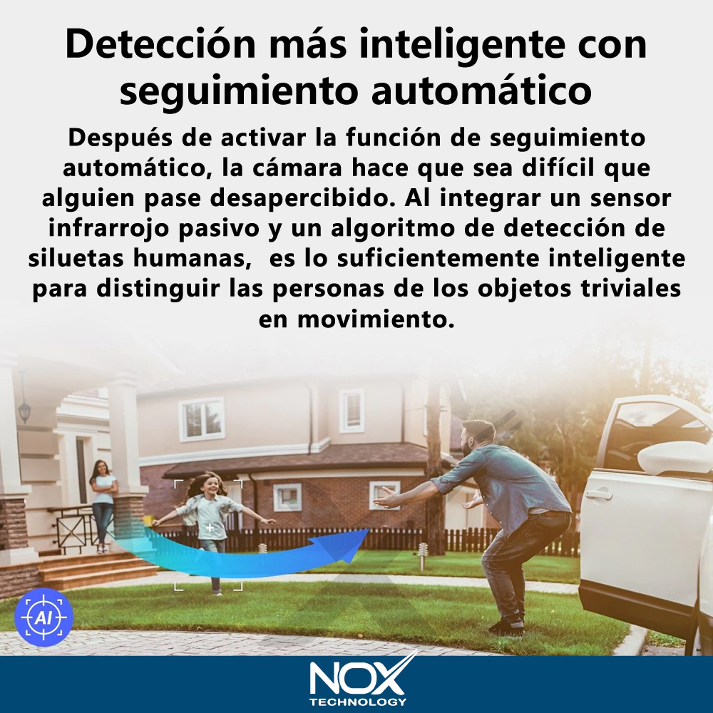 - Detección de movimiento con IA, identifica personas y reduce falsas alarmas causadas por objetos en movimiento.